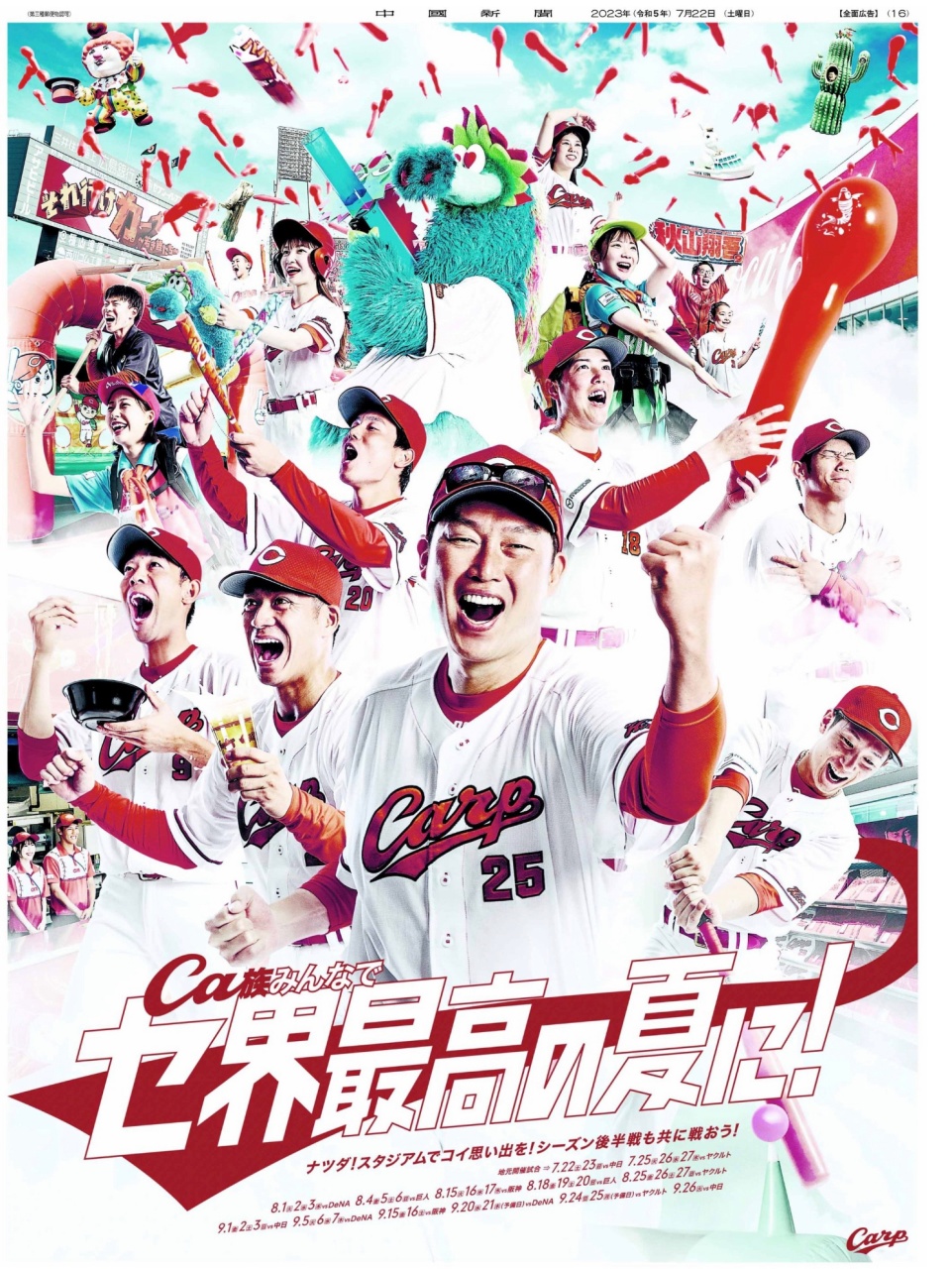ペナントレース後半戦開始!本日の中国新聞には全面広告が