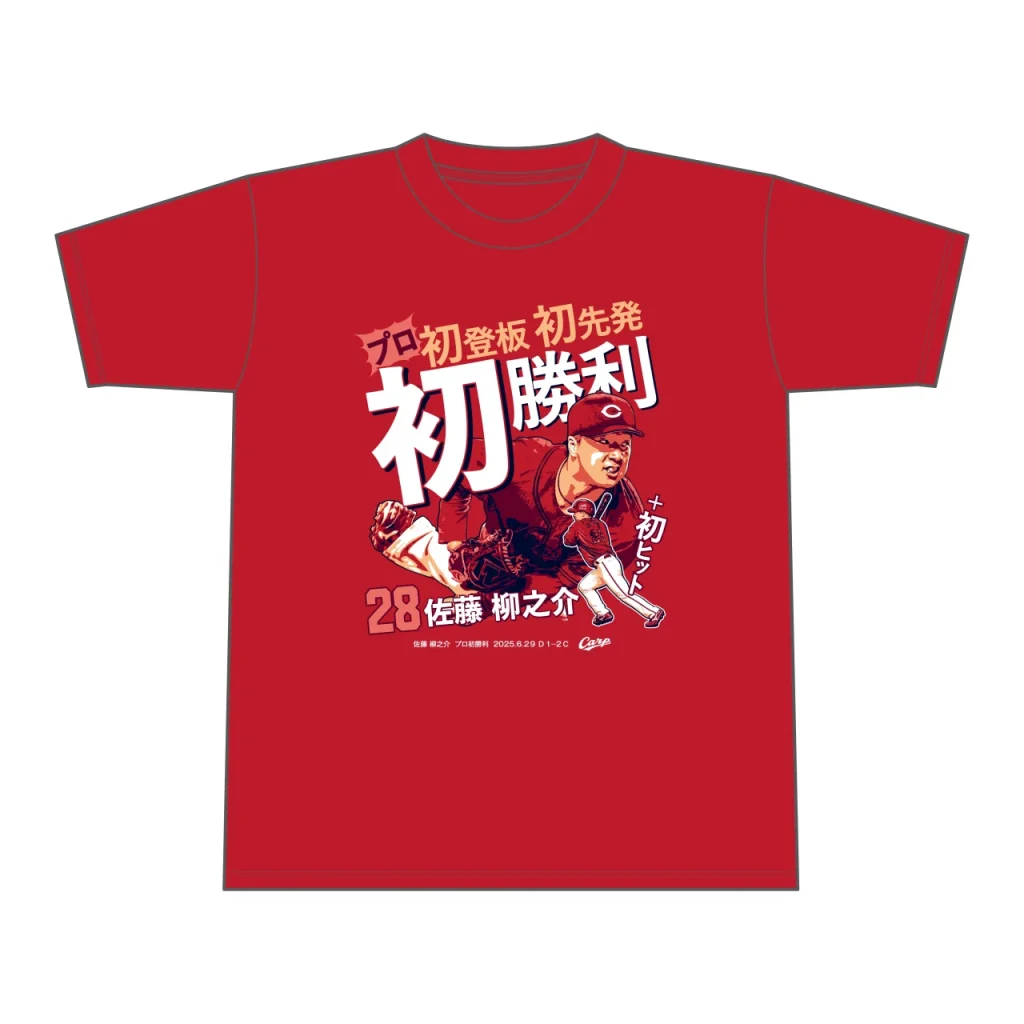 6月29日(日)、プロ初先発となった佐藤柳之介投手が見事初勝利!(スポニチアネックスのニュース記事)。もちろん作られました「【記念】佐藤柳之介プロ初勝利Tシャツ…
