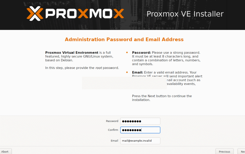 Cockpitで仮想マシンを構築したことがあれば、作業はさほど難しくはありません。公式サイトからISOイメージをダウンロードしてブートし、画面の案内に従って進めていき、rootのパスワードとメールアドレスを設定します。