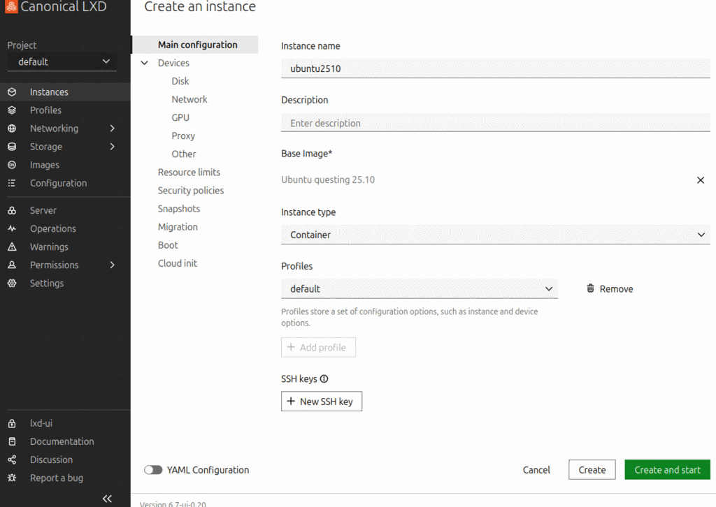 LXDはLinuxコンテナおよび仮想マシンを管理するためのシステムですが、LXD UIを導入することで、コマンドラインを使わずにブラウザからコンテナの作成・管理ができるようになります。ここではUbuntu25.10に導入していきます。
