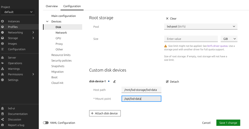 sudo chown 1000:1000 /mnt/lxd-storage/lxd-data