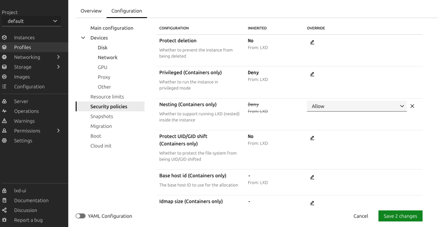 これにはいくつか方法がありますが、手軽で安全なのは、コンテナの設定でIDマッピングを許可することです。通常、非特権 LXD コンテナでは、