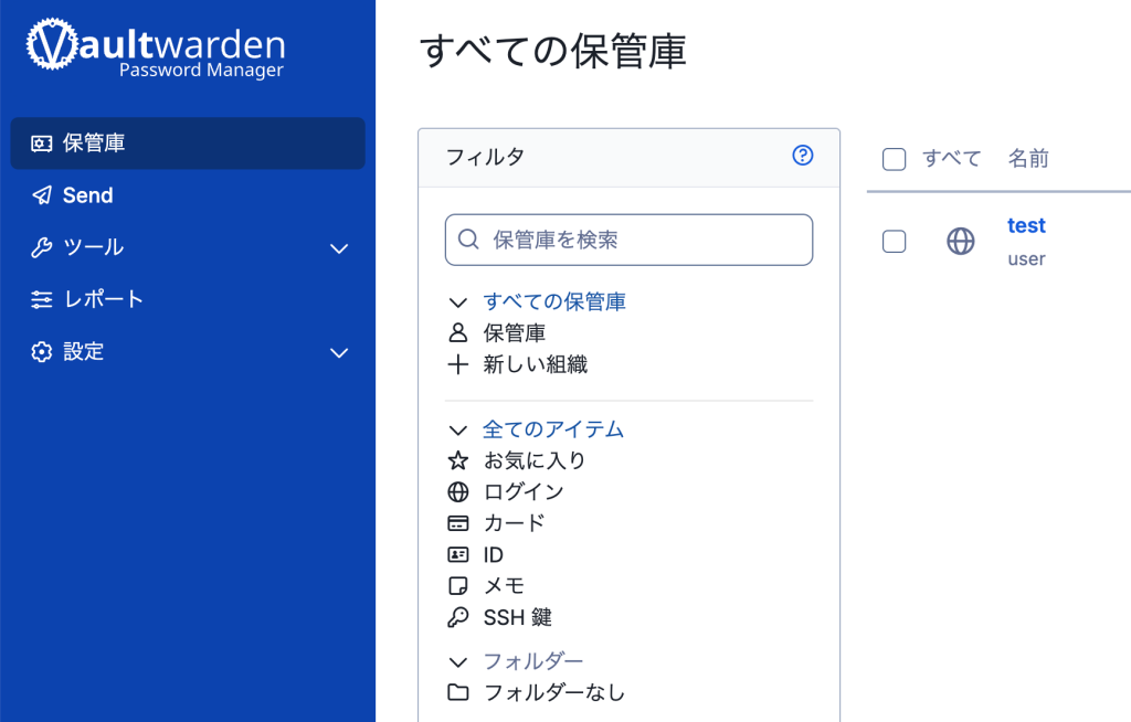 バックアップ保存先:/opt/lxd-data/vaultwarden
