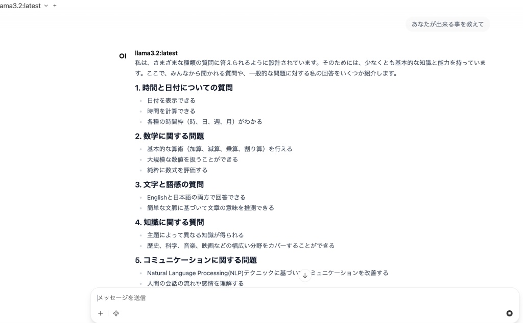 モデルのダウロードが完了したら、上部のドロップダウンでモデルを即切り替えれば、会話を開始できます。