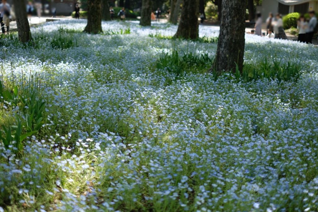 桜が過ぎたこの時期の花と言えばネモフィラ。ひたちなかの国営ひたち海浜公園や、国営昭和記念公園などが有名でえすが、少し遠いのが難点。残念に思っていましたが、調べてみると日比谷公園にあるとのこと。