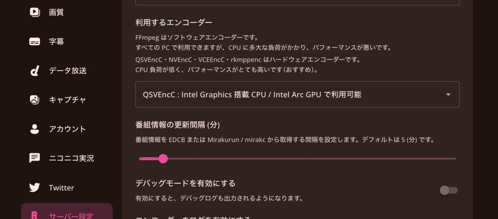 なお、KonomiTVセットアップ時には下記を自動入力しているので、変更箇所があるならKonomiTV起動後にアカウント登録をして、サーバ設定で変更します。