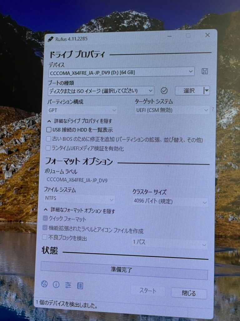 Rufusを使用してブータブルUSBの内容を追加