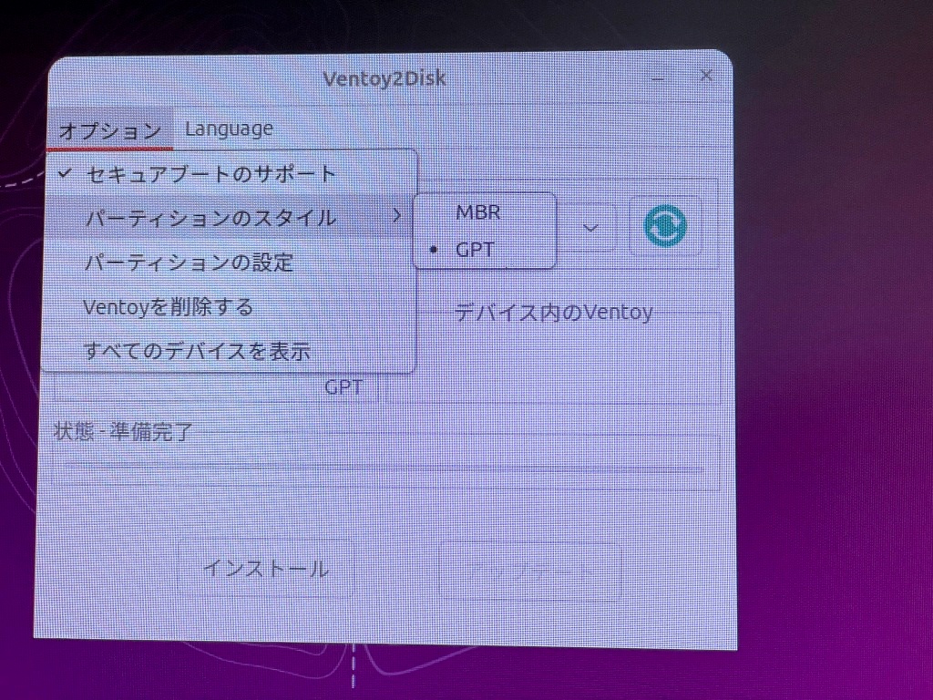 VentoyのUSBメモリやUSB HDDを作成