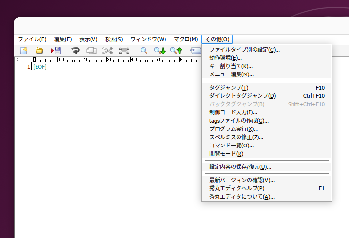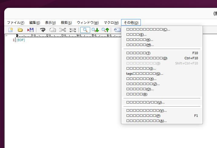 問題なく起動できているようですが、この例では、メニューなどを表示してみると文字化けが発生しています。