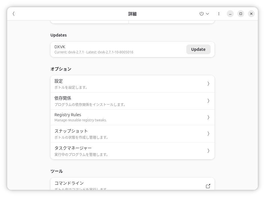 - 特徴: Wineに加えて、DXVK(DirectXをVulkanに変換)やゲーム用パッチを統合。